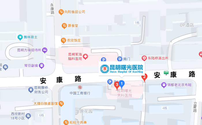 自駕路線: 導(dǎo)航至 昆明曙光男科醫(yī)院 停車場(chǎng)可供停車。(昆明市西山區(qū)安康路195號(hào))